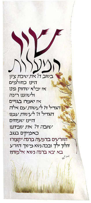 "שיר המעלות בשוב ה' את שיבת ציון היינו כחולמים"...- מזמור קכ"ו בתהילים, ונוהגים לזמר אותו בשבתות ובחגים לפני ברכת המזון.